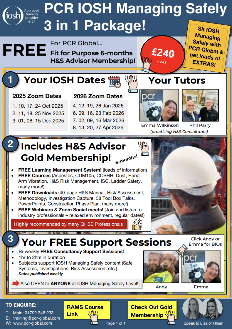 Complete our IOSH Managing Safely and get reduced PCR Global courses!!