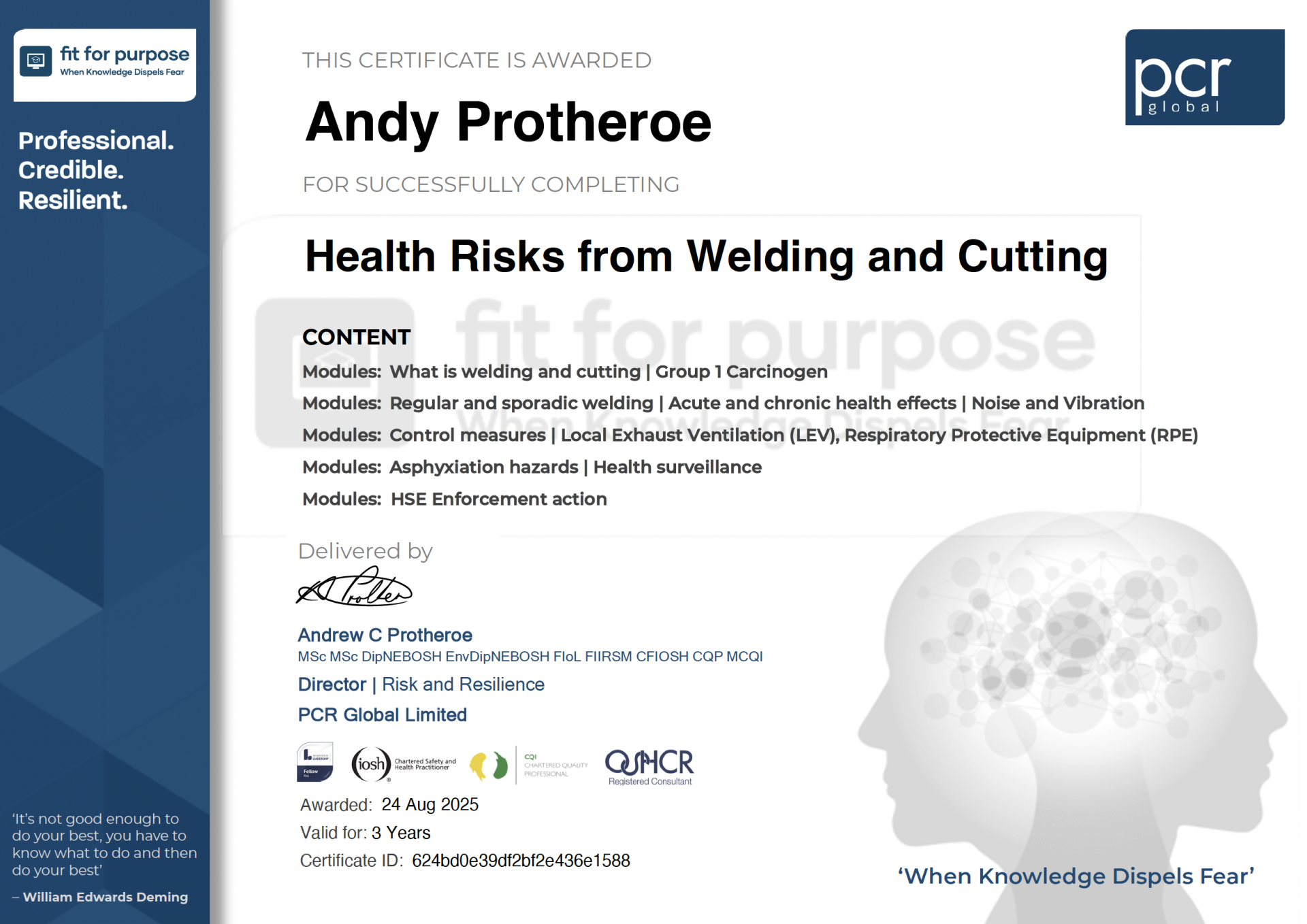 Welding and cutting training is essential because it is a legal duty, it helps workers recognise and control serious hazards, ensures the correct use of PPE/RPE and LEV, prevents accidents, and provides evidence of competence and compliance.